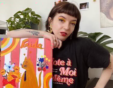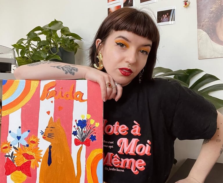 Jeune artiste pluridisciplinaire qui nous propose une fenêtre sur ses créations, en passant par la peinture, du modelage et des installations, tout type de médium sont créés dans un univers coloré.